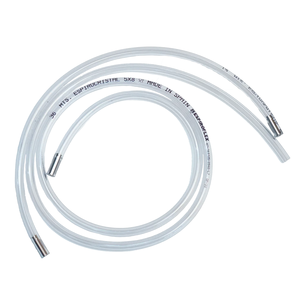 Aanzuigslang met steunhuls. Deze slang wordt gemonteerd tussen de sirooptank en de sirooppomp. Buitendiameter: 8 mm.