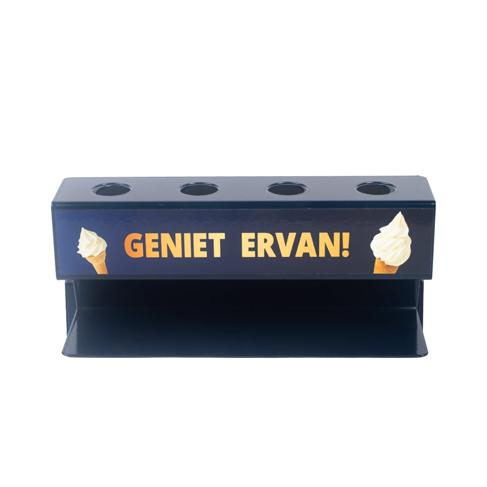 IJshoorn standaard met NISSEI bedrukking. Voor vier ijshoorntjes.